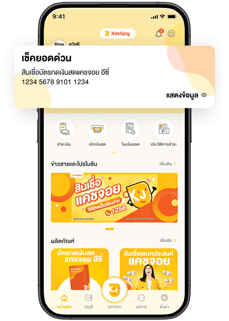"Kashjoy easy App" นำเสนอประสบการณ์การใช้งานที่เรียบง่าย ด้วยขั้นตอนการสมัครที่สะดวกสบาย สามารถดำเนินการได้ทุกที่ทุกเวลา พร้อมระบบอนุมัติสินเชื่อที่รวดเร็ว เพื่อให้ลูกค้าเข้าถึงบริการทางการเงินได้อย่างทันท่วงที ด้วยเทคโนโลยี "ยืนยันตัวตนทางดิจิทัล (NDID)" ทำให้ทุกธุรกรรมผ่านแอปพลิเคชันมีความปลอดภัยสูงสุด สร้างความมั่นใจให้กับผู้ใช้บริการในทุกขั้นตอน แอปพลิเคชัน "Kashjoy easy" มาพร้อมฟีเจอร์การใช้งานที่ครบครัน
