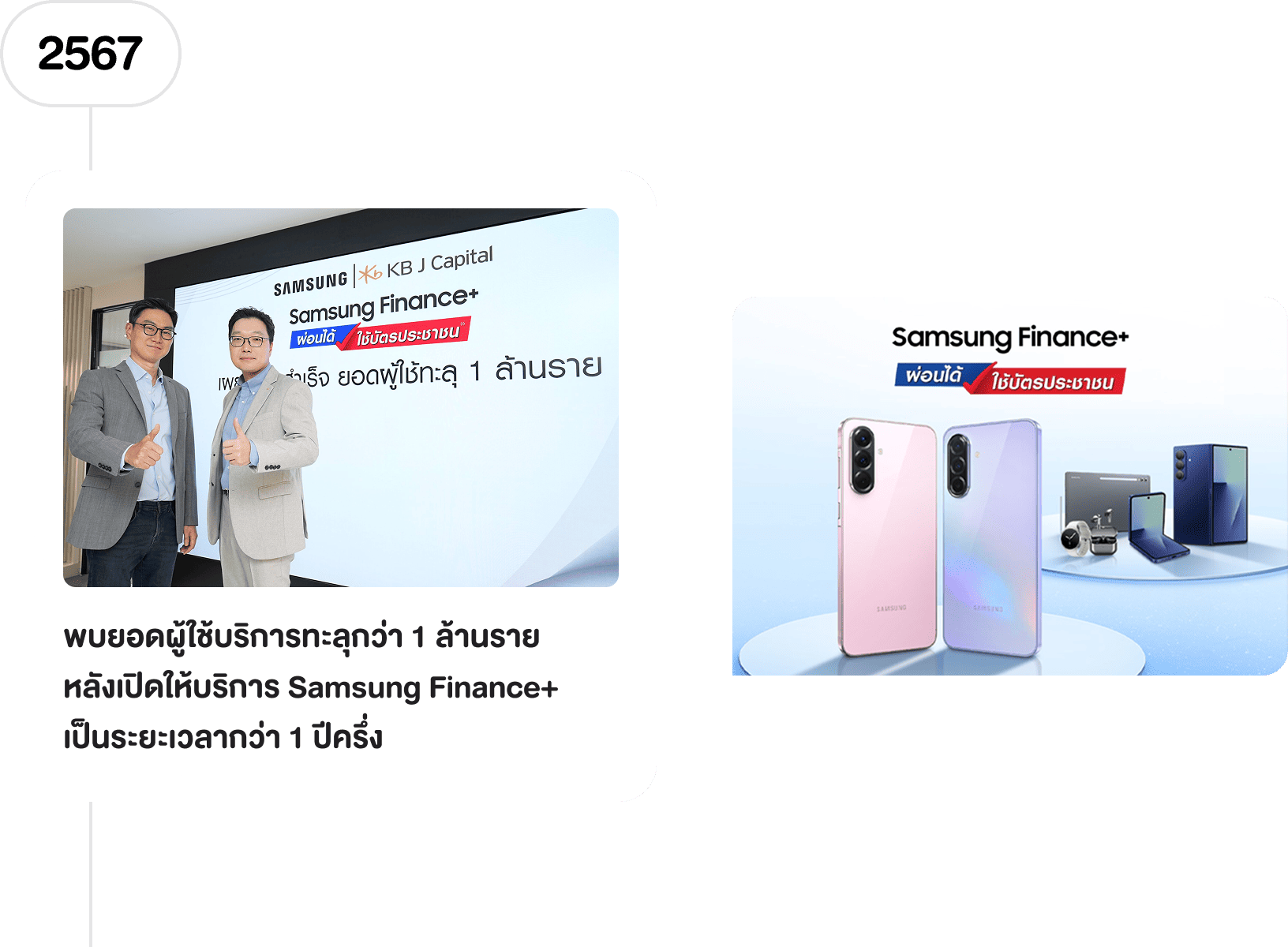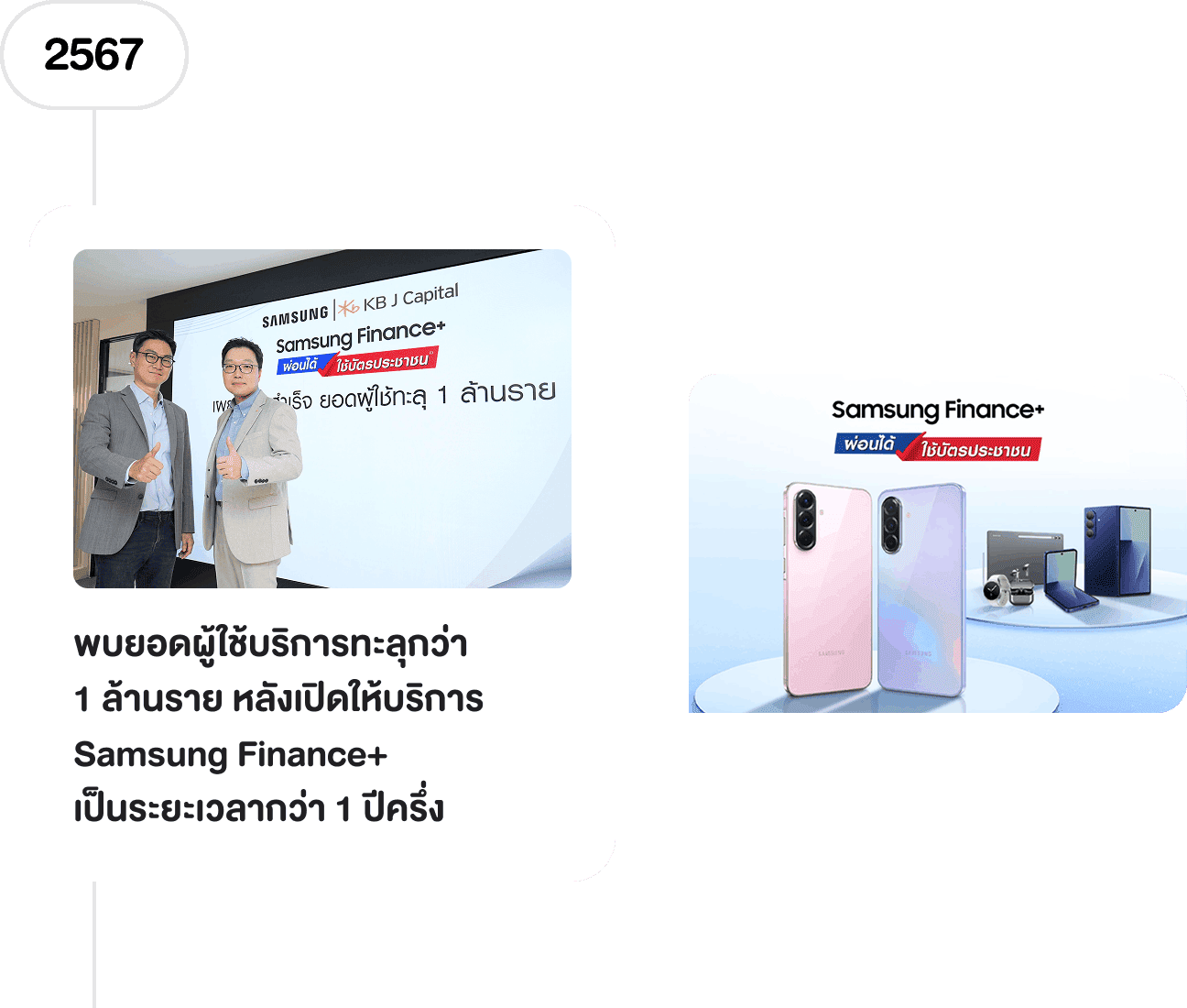 ไทยซัมซุง จับมือ เคบี เจ แคปปิตอล เปิดให้บริการซัมซุงไฟแนนซ์พลัส เปิดโอกาสให้ผู้บริโภคเป็นเจ้าของโทรศัพท์มือถือซัมซุง ได้ง่ายๆ ผ่อนได้ทุกรุ่นโดยใช้บัตรประชาชนเพียงใบเดียว