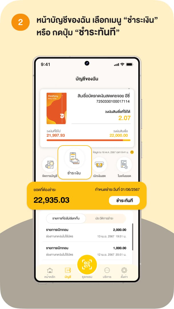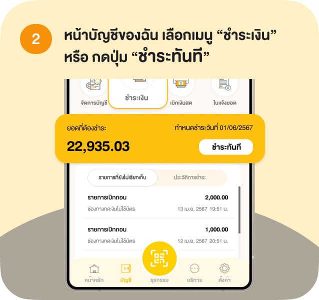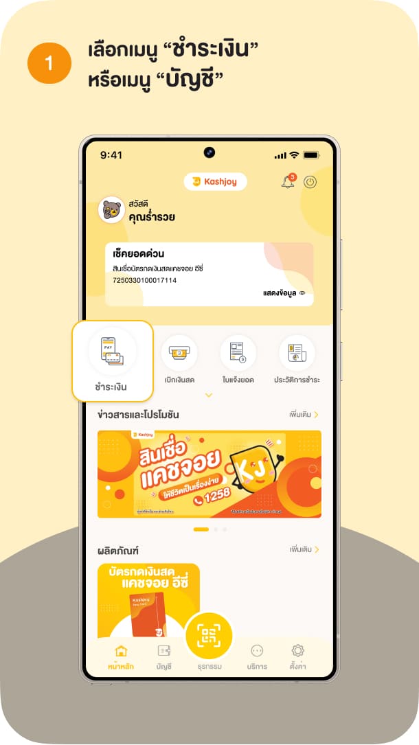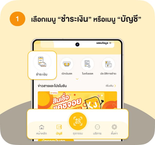 เลือกเมนู “ชำระเงิน” หรือเมนู “บัญชี”