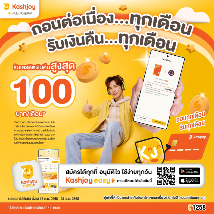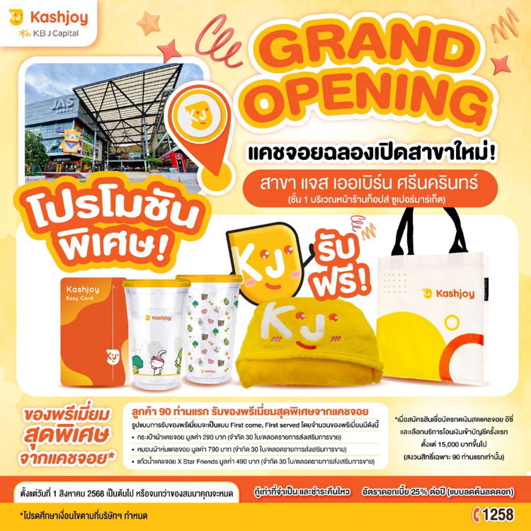 - ลูกค้าสามารถสมัครสินเชื่อได้ทั้งหมด 4 ช่องทาง ดังนี้1. สมัครผ่านแคชจอย อีซี่ แอปพลิเคชัน (Kashjoy Easy application) ยืนยันตัวตนผ่าน NDID2. สมัคร ณ จุดให้บริการ Kashjoy (POS) ปัจจุบันมีทั้งหมด10 สาขา (สามารถตรวจสอบรายละเอียดจุดบริการ Kashjoy ได้ที่เมนู "จุดบริการใกล้ฉัน")3.สมัคร ณ จุดให้บริการร้านค้าพันธมิตร (Partner) (สามารถตรวจสอบรายละเอียดร้านค้าพันธมิตรได้ที่เมนู "จุดบริการใกล้ฉัน")4. สมัครผ่านเว็บไซต์ www.kbjcapital.co.th (กรอกข้อมูลเบื้องต้น เพื่อให้พนักงานติดต่อกลับ)