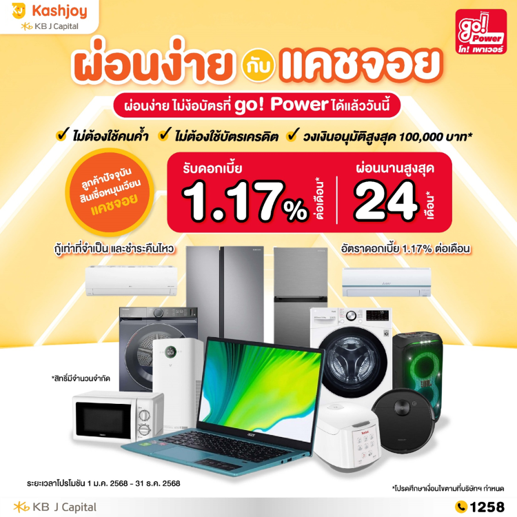 ผ่อนง่าย ไม่ง้อบัตรที่ go! Power เฉพาะลูกค้าสินเชื่อหมุนเวียนแคชจอยเท่านั้น